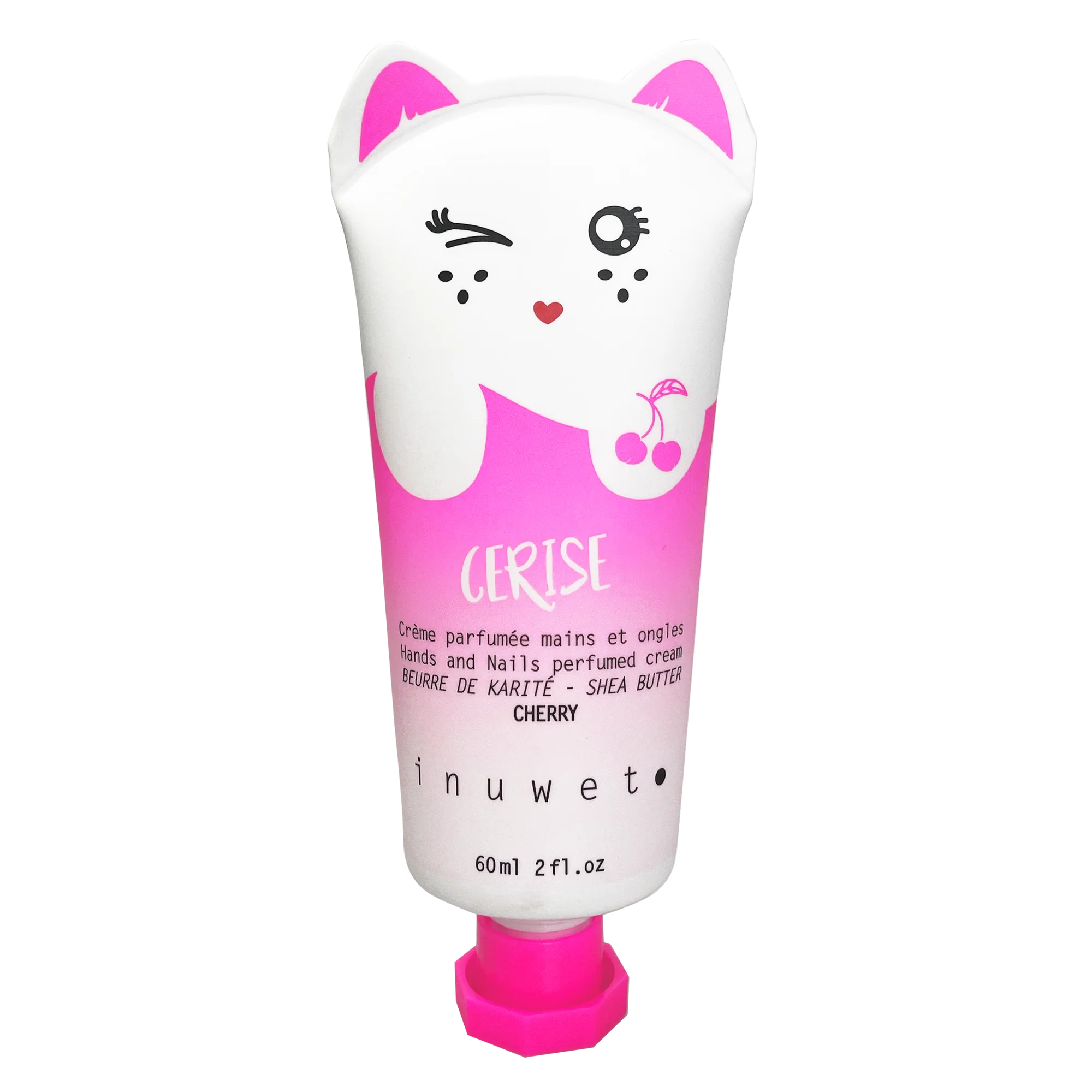 Une jolie crème mains et ongles hydratante de 60mL qui hydrate et nourrit la peau en profondeur avec un délicieux parfum cerise et un packaging chat ultra craquant.